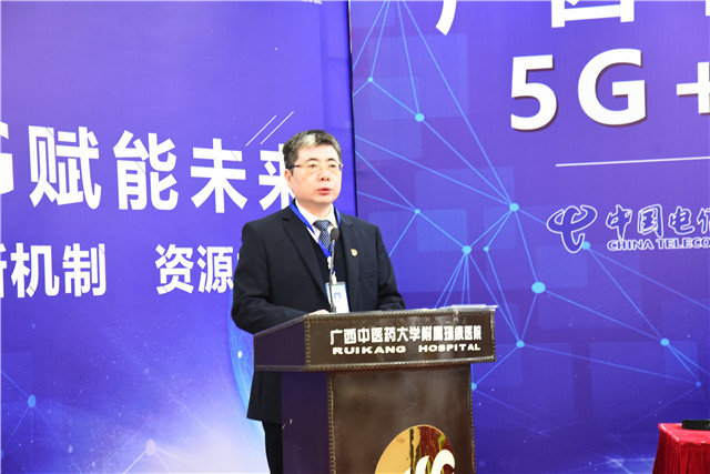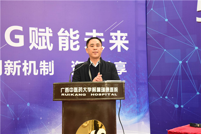 为贯彻落实党中央、国务院关于发展“互联网+”的重要决策部署,推进健康广西建设,推动医疗与互联网深度融合,提升全区医疗卫生现代化管理水平,1月16日下午,附属瑞康医院在B座10楼会议室召开5G+智慧医疗合作签约仪式。中国电信广西分公司党委委员、副总经理郑宗任,华为公司广西企业业务副总经理王美均,中国工商银行南宁分行副行长尚铁山,中国农业银行南宁分行副行长沈卫,附属瑞康医院党委书记高宏君,院长唐友明,副院长庞刚、韦思尊,纪委书记黄建民,副院长陈锋、宋策出席签约仪式。仪式由高宏君主持。