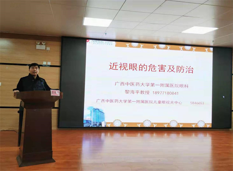 2020年1月18日,“广西儿童眼病防治联盟”专家团队:一附院眼科黎海平主任带领其团队共4人、广西医科大附属晶亮眼科医院胡秋明主任,受邀到武鸣区妇幼保健院为眼科相关疾病诊疗培训班授课及开展义诊活动。