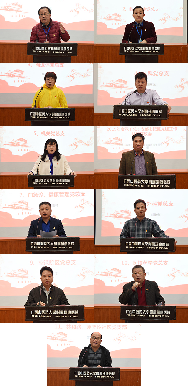 会上,医院8个党总支和 3个党支部书记逐一进行现场述职,他们从思想政治建设、党建工作责任履行、党支部建设、党员队伍建设、廉政建设、党建工作创新等六个方面结合自身工作实际对支部工作进行了总结,客观查找工作中存在的问题和不足,深入对照剖析,并汇报了下一步的工作谋划。