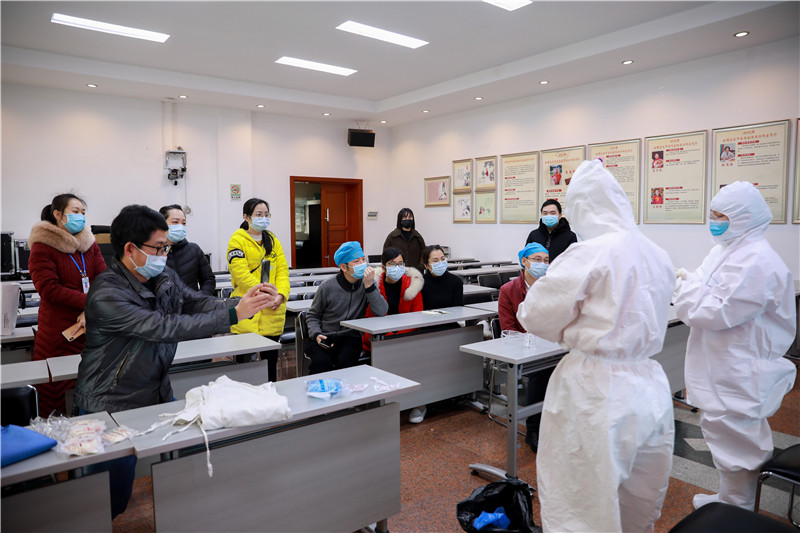 赵莹主任围绕新型冠状病毒感染的肺炎感染预防与控制进行了解读,并对防护服穿脱及要点作针对性的培训。