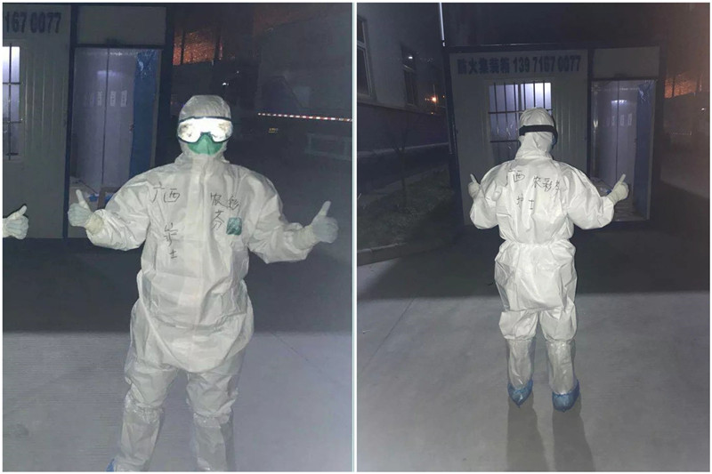 军令如山,面对突如其来的紧急任务,一附院医疗队队员主动请缨,出征首战。最终,临床经验丰富的欧阳暾和曾在发热门诊支援的农彩芬成为正式进入沌口方舱医院的第一批广西医疗队队员。得知两位队员即将入舱,其他队员们及远在后方的同事们纷纷给他们加油打气,并一再叮嘱:“注意做好防护”。