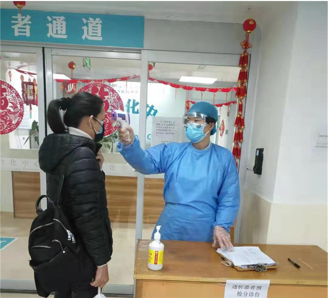 1月21日开始,中心全面对透析患者进行排查,尤其调查患者有无与疫区人员接触史,并开始严格管理透析中心,要求患者每天在家里自行测量体温,进入中心透析时全部测量体温并记录。对疑似患者全部送到发热门诊进行筛选。同时,凡是疑似患者或确诊透析患者均由定点医院收治隔离,进行专门床旁透析。中心还反复强调透析患者无特殊情况不能更换透析单位。对于仅需要隔离的透析患者,中心通过协调,专门准备了适合隔离的单元,对疫情防控起了重要作用。