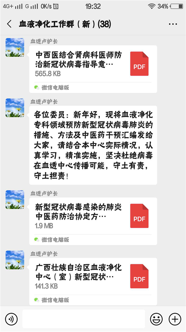 疫情当前,血透净化中心在疫情早期就开始积极关注,春节前便通过网络要求全员参加了新型冠状病毒引起的肺炎知识的培训,随后仍然不断加强培训,让医护人员及工勤人员掌握相关知识。加强消毒和洗手培训,要求医护人员严格做好自我防护。在中心制作了简单明确的宣传资料,给透析患者全覆盖宣传。