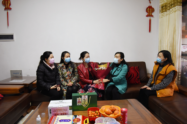 3月4日,自治区妇联副主席岑宛玙、发展部部长杨海林在附属瑞康医院党委副书记、副院长陈日兰及相关部门负责人的陪同下,对医院疫情防控一线医护人员及家属进行走访慰问,为“最美逆行者”及其家属送上真诚的问候。