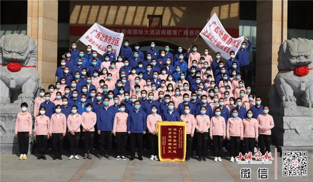 在广西援堰医疗队员完成使命即将返程之际,3月20日,十堰市委、市政府举行欢送仪式,十堰市市委书记张维国等市领导为广西援堰勇士送行,并为医疗队员颁发荣誉证书,授予十堰市“荣誉市民”。