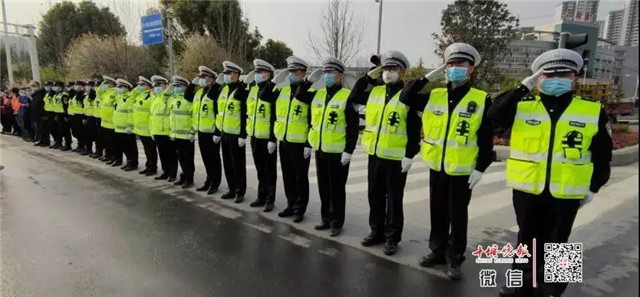 车队的正前方,交警一路开道送行。十堰公安民警整装列队,以最高规格、最深敬意,欢送英雄们回家!