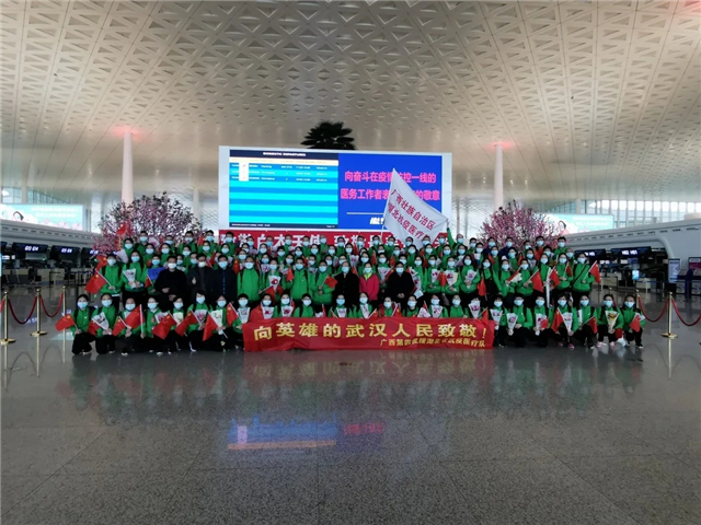 2月15日,出发时,武汉大雪纷飞,他们勇敢逆行驰援武汉。3月29日,归来时,已是春满人间,他们完成任务返回南宁。从进驻沌口方舱医院,实现了“患者零死亡、医护人员零感染、治愈人员零回头”的目标,到再战协和医院西院重返抗疫一线,45个日日夜夜的坚守,他们不畏艰险圆满完成各项救治任务。从陌生到熟悉,从病患到同袍,一个多月的奋战,他们与武汉人民结下了的珍贵情谊。临别之际,他们用朴素、真挚的情感表达,“相约来年再聚江城,共赏春日樱花”。