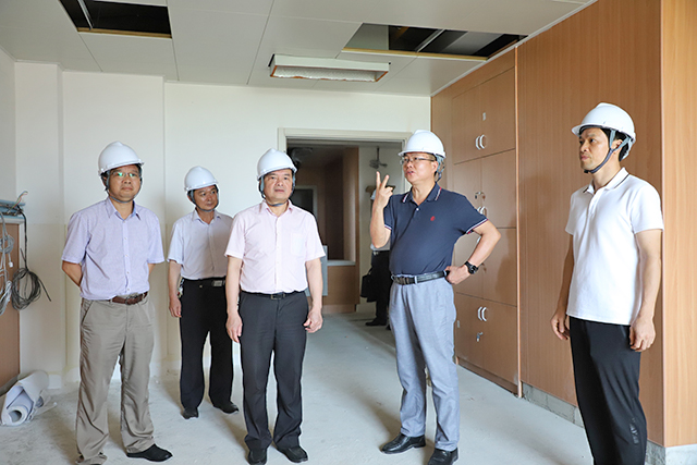 6月1日下午,崇左市卫生健康委党组书记赵波一行4人在扶绥县委副书记、县长黄建辉,县卫健局局长卢国坚及相关部门负责人的陪同下来到附属瑞康医院建设当中的空港院区开展调研指导工作。院区领导梁春才、林宗汉、黄建东陪同调研。