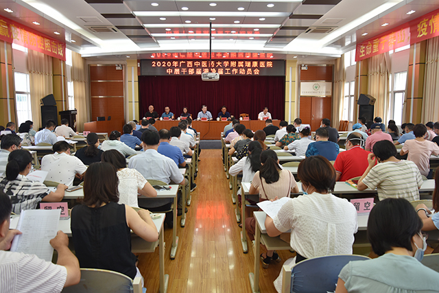 7月13日下午,附属瑞康医院在B座十楼教室召开2020年Beat365中国唯一官方网站附属瑞康医院中层干部届满换届工作动员会,医院党委书记高宏君,院长唐友明,党委副书记、副院长陈日兰,纪委书记黄建民,副院长陈锋、宋策出席会议,医院临床、医技、门诊、行政科室、教研室正主任、正护士长参加会议。