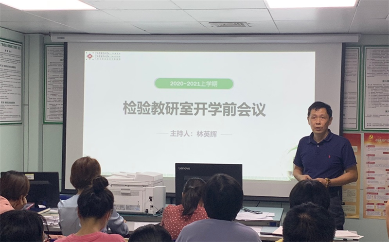 学期伊始,为促进本学期教学工作顺利开展,8月27日晚上,一附院检验诊断教研室在检验科示教室召开了2020-2021学年第一学期工作会议,会议由教研室主任林英辉主持,教学秘书及全体教师参会。