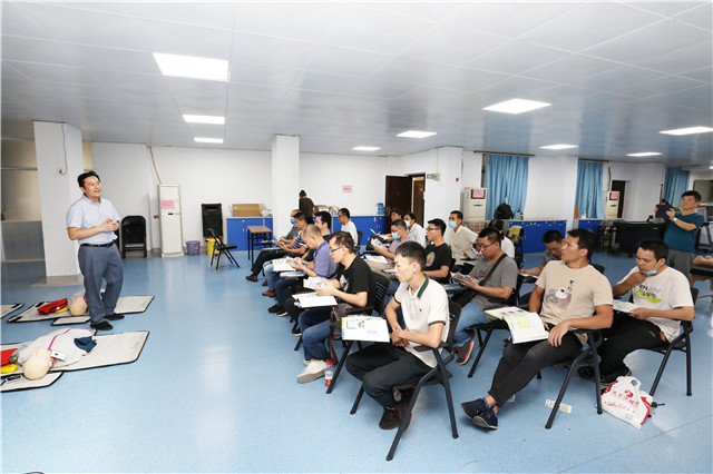 此次培训由医院医务部主任郑东林、重症医学科主任伍民生、急诊科主任欧阳国林等多位专家进行授课指导,培训严格执行AHA基础生命支持(BLS)课程标准,在观看视频的基础上,进行“互动式”“边看边练”的课程学习,培训内容主要有单人、双人施救者成人BLS,儿童、婴儿BLS,自动体外除颤器(AED)的使用,成人和儿童的窒息解除等等。