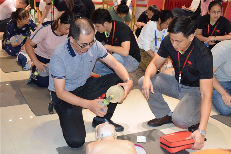 本次培训导师团队由一附院仙葫院区急诊科医护团队组成,培训内容包括单人及双人施救者成人、婴儿BLS;自动体外除颤仪和球囊面罩的使用;团队调动及高效团队活动;成人、儿童、婴儿窒息等方面。
