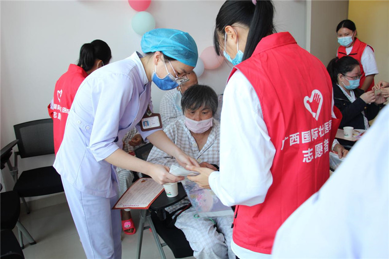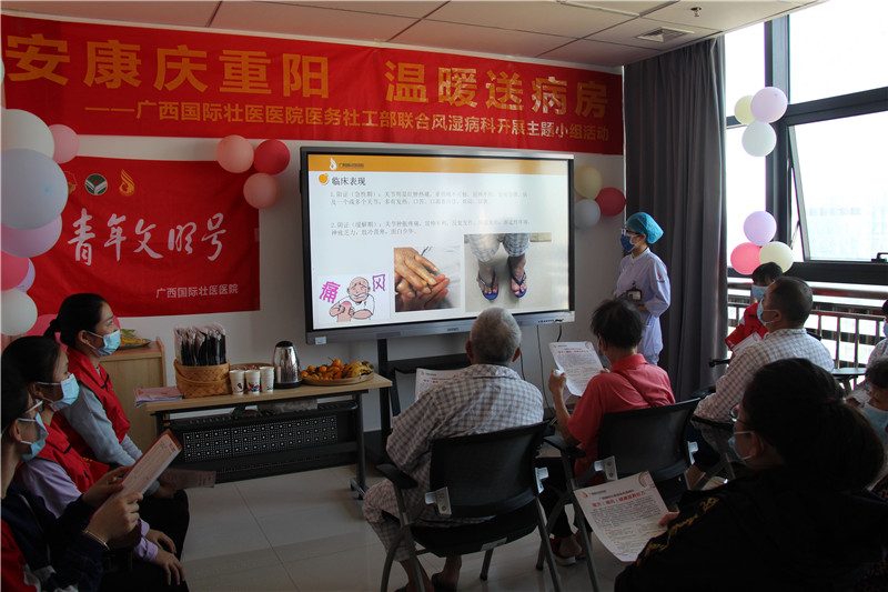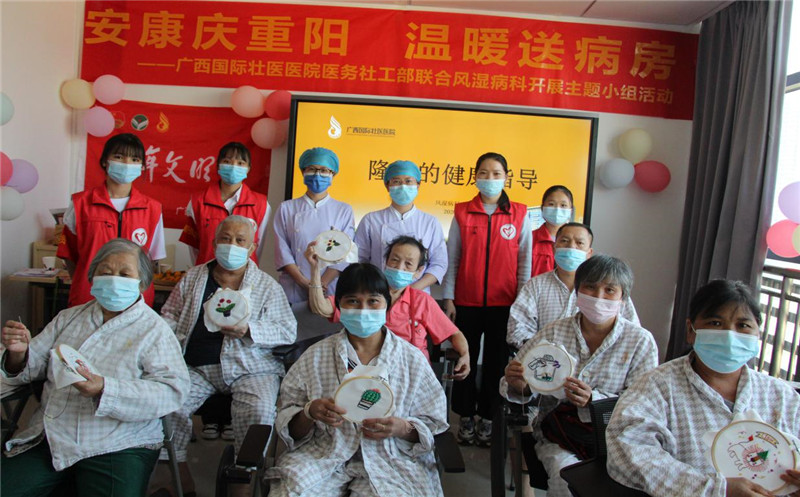 附属国际壮医医院医务社工部开展“安康庆重阳 温暖送病房”主题小组活动