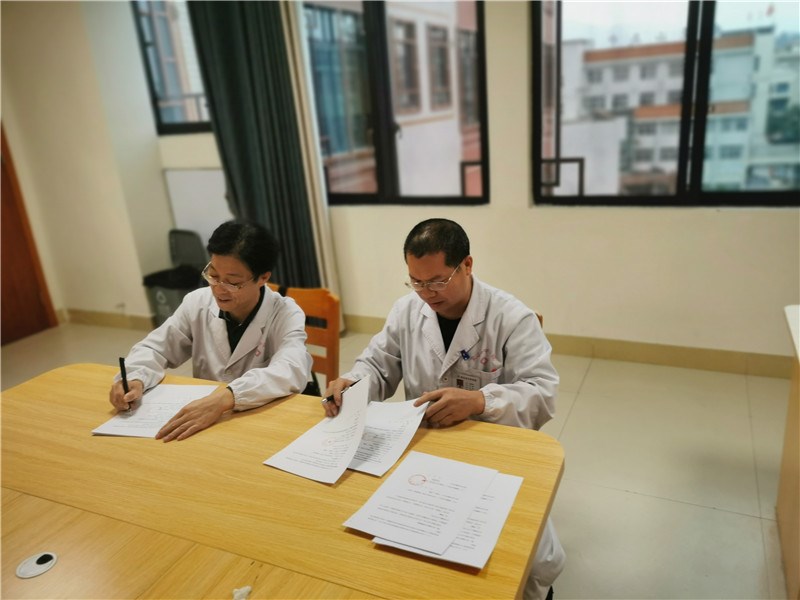 在交流会现场,一附院仙葫骨三科段戡主任以及科室人员及研究生、蒙山县中医院孔院长、肖副院长、骨科领导及其医护工作人员一起进行了教学查房、疑难病例的讨论;同时,还开展了科研培训和专科特色建设交流,并现场和蒙山县中医院骨科共同签订了“自治区科技厅重大专项(创新驱动发展专项)研究”的课题合作协议书。