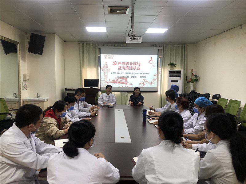 为了认真开展党支部“三会一课”活动,11月4日,一附院门急诊党总支第一党支部在医院门诊楼治未病中心会议室召开了党员大会,一附院副院长吴西西以普通党员身份参加了支部组织生活,并为党员同志上了题为“严守职业底线 坚持廉洁从业”的党课。