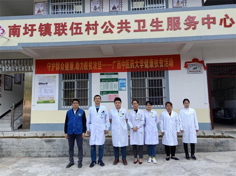 11月12日,一附院第七批“轮值村医”党员专家肛肠科付军、急诊科张元侃、仁爱分院针灸科黄予巍、黄新格来到一附院定点扶贫村隆安县南圩镇联伍村继续开展健康扶贫活动。