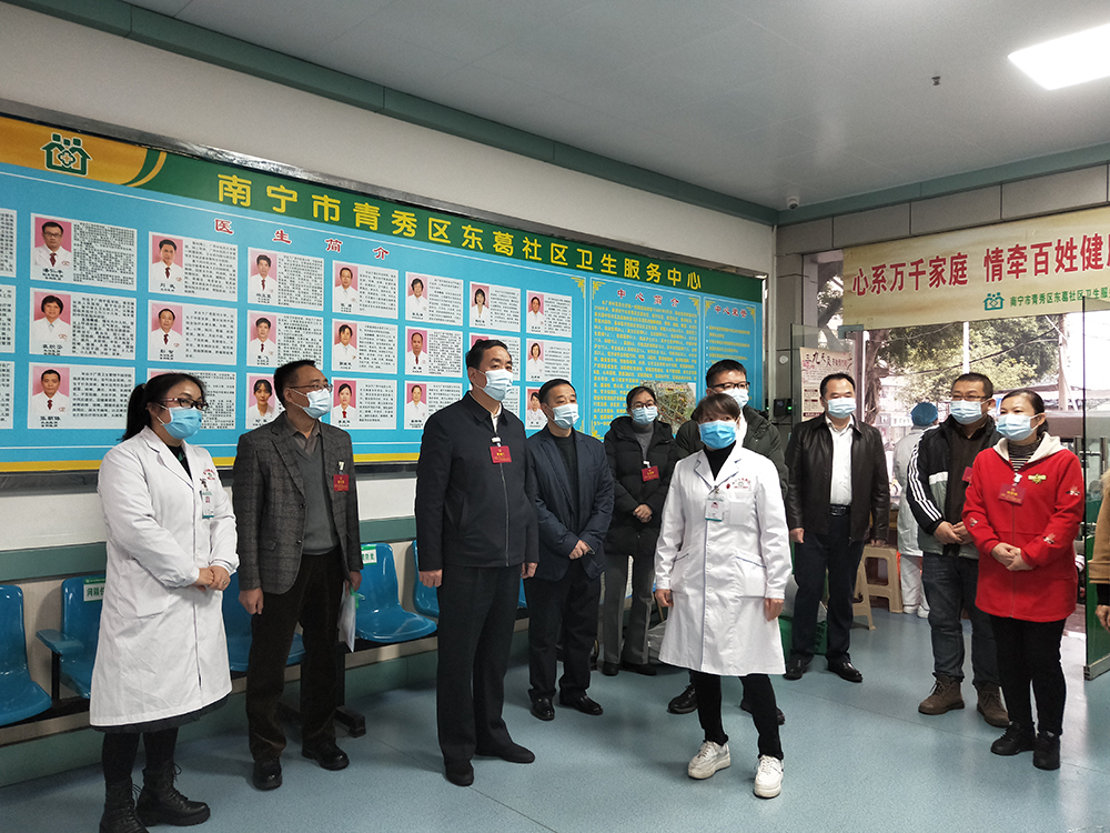 南宁市纪委书记缪佃江及新竹社区人大代表到一附院东葛社区卫生服务中心开展疫情防控及爱国卫生运动调研工作