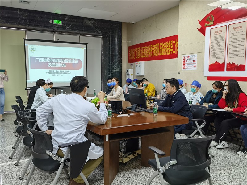 3月26日下午一附院院仙葫院区第一党支部与广西国际壮医医院急诊党支部开展以提升犬伤门诊业务能力为主题的党建共建交流活动,为即将开业的犬伤门诊做好筹备工作。