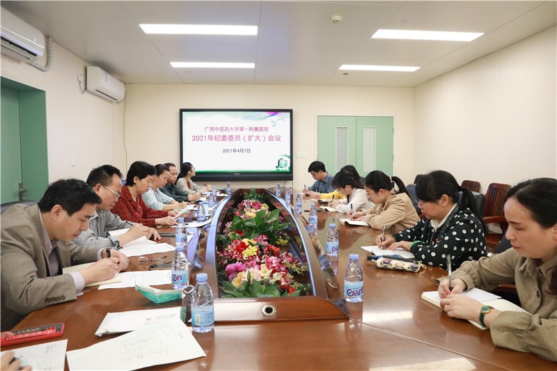 4月7日下午,一附院纪委在行政会议室召开2021年纪委委员扩大会,全体纪委委员、党总支纪检委员、专职纪检干部参加会议,会议由一附院纪委书记周广林主持。