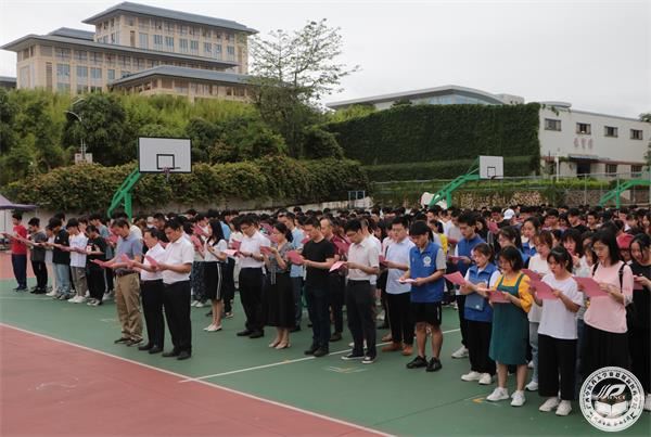为深入学习贯彻党的十九大及十九届二中、三中、四中、五中全会精神以及全国教育大会精神,认真落实习近平总书记关于宪法学习、宣传教育的系列重要指示精神和上级有关文件要求,5月24日上午,赛院在运动场举行了以“深入学习宣传习近平法治思想,大力弘扬宪法精神”为主题的宪法宣誓活动。赛院领导李成林、梁天坚、傅鹏、赵斌、全体中层干部、辅导员及1200名学生代表出席本次活动。宣誓仪式由纪委书记傅鹏主持。