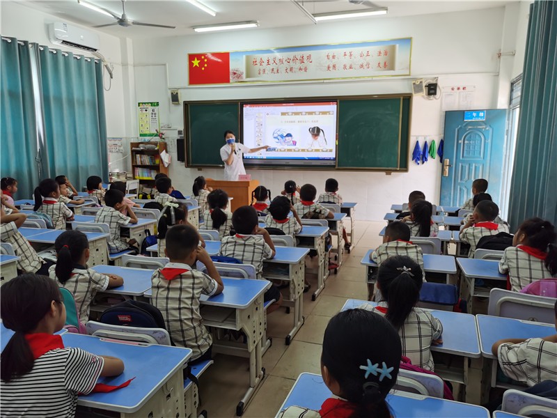 本次健康宣讲活动由眼科钟梓铭医生为全校320余名同学讲了一场生动的“防控近视 你都知道怎么做吗?”为主题的爱眼护眼知识讲座。钟医生从眼睛的基本知识讲起:眼睛的构造,近视的因素,如何预防近视等方面,与孩子们分享了许多关于近视的知识。在钟医生的快乐教学、趣味互动下,同学们充分认识到了爱护眼睛的重要性,对预防近视的措施充满了兴趣。