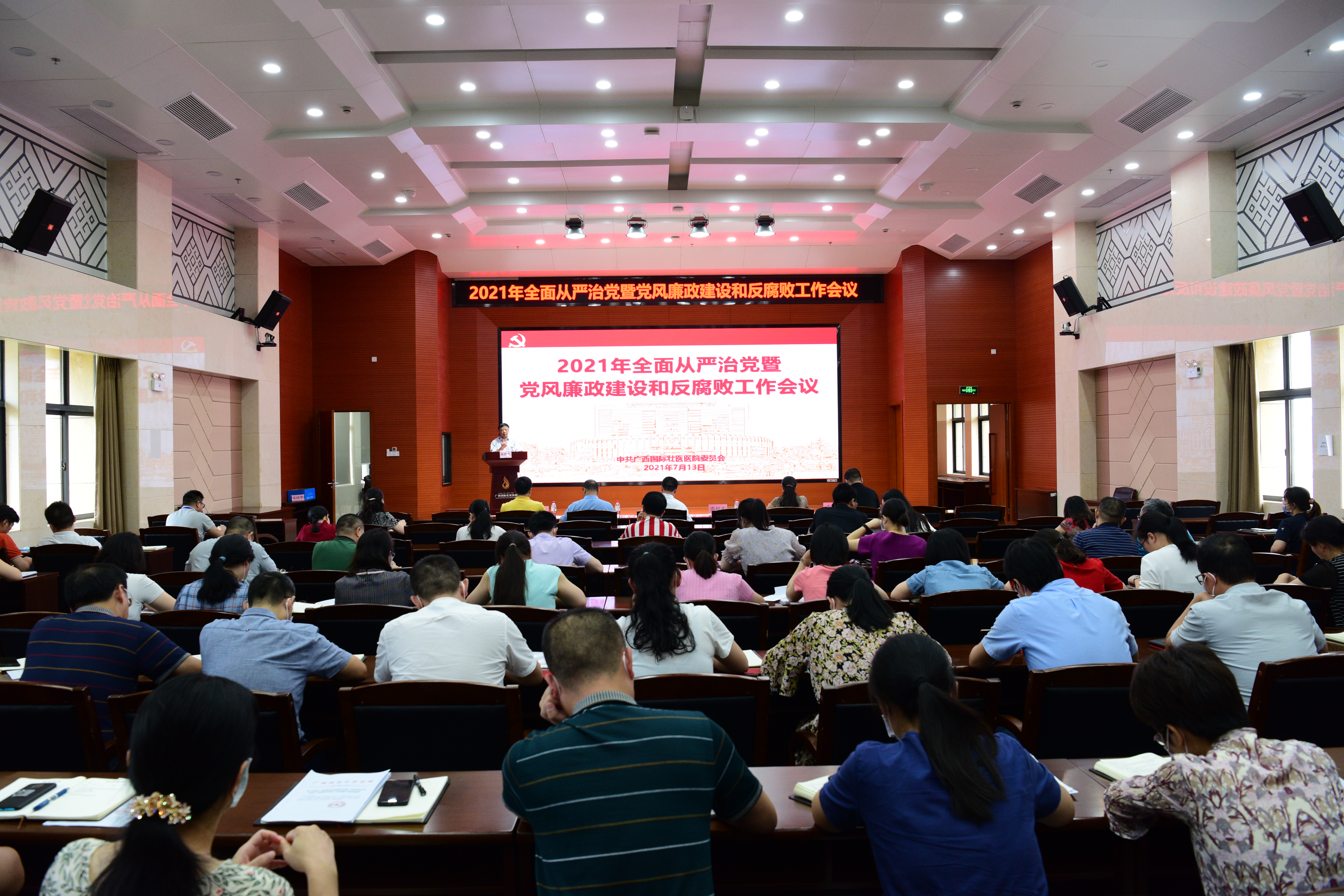 7月13日下午,附属国际壮医医院召开2021年全面从严治党暨党风廉政建设和反腐败工作会议,深入学习贯彻十九届中央纪委五次全会精神,传达学习自治区有关会议精神,总结部署医院全面从严治党和党风廉政建设工作。