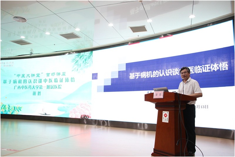为在建党百年之际隆重迎接第四个“中国医师节”的到来,8月13日下午,中国医师奖医务专家、广西名中医、一附院院长谢胜教授作为一附院2021年首场“中医大讲堂”系列讲座授课专家,与全院中医医师、中医住培学员、研究生、进修生、实习生及中医爱好者等600余人共同问道、求知、探理,以医者的初心与担当庆祝中国医师节。讲座由医院副院长卢健棋主持。