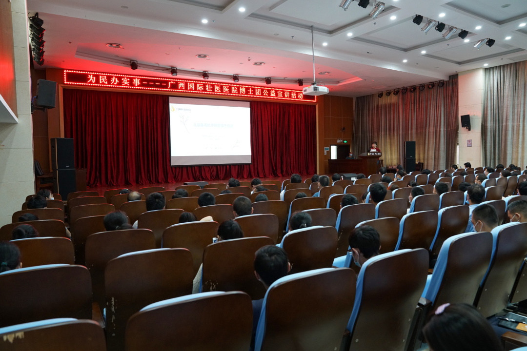 广西国际壮医医院内科党总支书记、脑病科主任王凯华博士、骨关节与脊柱科主任张文捷博士、儿科(含新生儿科)主任甘娜博士分别授课,武鸣区中医医院100余名医务人员到场听课。