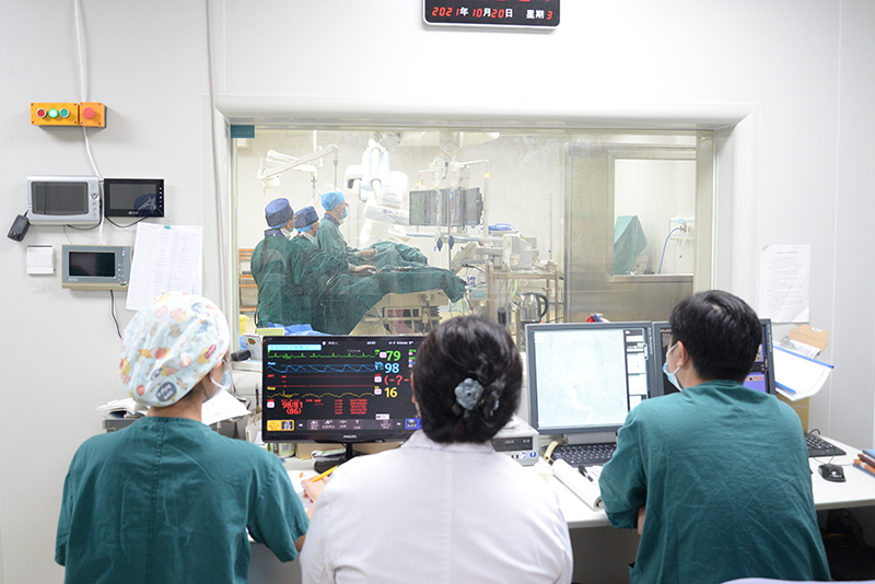 脑病科介入团队正在争分夺秒的进行介入