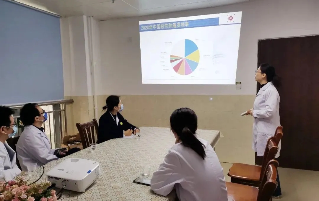 肿瘤科学科负责人、仙葫院区肿瘤科二区主任石玮副主任医师及科室方芳主治医师,脾胃病科杨成宁主治医师、陈广文主治医师,健康体检中心张云燕主治医师等会同靖西市脾胃病科联合开展教学查房,对疑难危重病例进行了剖析探讨,有针对性的提出了治疗建议方案。方芳主治医师还开展了《癌症早期筛查》专题讲座,通过现场问答的启发教学方式,深入浅出的讲授了中西医并举治疗肿瘤的理念。