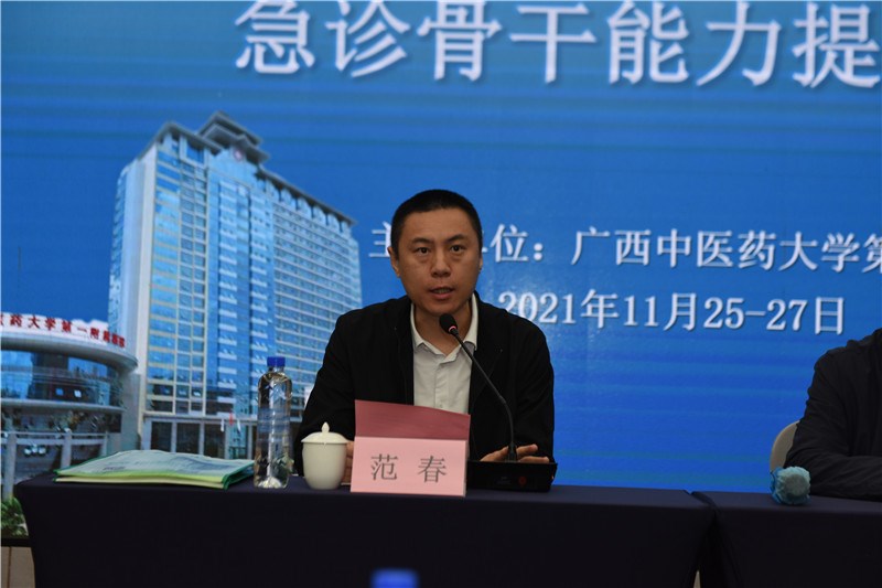 为进一步提升我区市县级中医医院急诊骨干能力,培养一批适应中医药传承创新发展的高素质中医药急诊骨干人才队伍。11月27日由一附院承办的2021年全区市县级中医医院急诊骨干能力提升培训班在南宁召开。自治区中医药管理局范春副局长、一附院副院长卢健棋出席会议,来自全区80余家市县级中医院近百名急诊骨干医师参加培训。开班仪式由卢健棋主持。