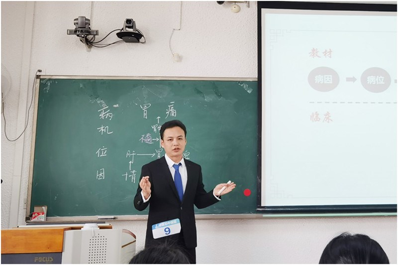 中医内科学教研室王道刚老师在比赛现场作教学演示