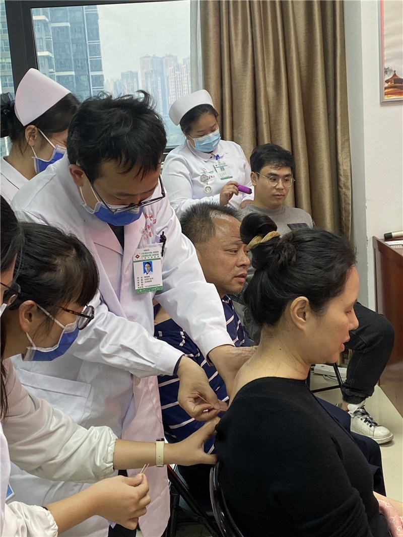 当天下午,广西大锰锰业集团有限公司义诊准时开始,现场按照疫情防控要求有序进行义诊。一附院医师为前来就诊的职工进行中医问诊、开具中药处方,免费测量血压、体验中医康复推拿等中医特色项目。一附院壮医针灸科韩海涛副主任针对该单位职工的腰颈肩部多发劳损、僵硬等,辩证施治,现场针灸,让员工感受到立竿见影的效果;脾胃肝病科的张夏医生则对员工进行中医问诊,把脉开方;康复科杜涵泽医生对员工的脊柱疾病除了进行康复复位外,还指导了一些日常康复动作,让职工在上班空隙时间就可以自己做缓解胀痛的训练。骨一科的黄静和武岳护师则带来特色中医疗法耳穴压豆和火龙罐,职工闻讯而来排队争相体验,获到一致好评。