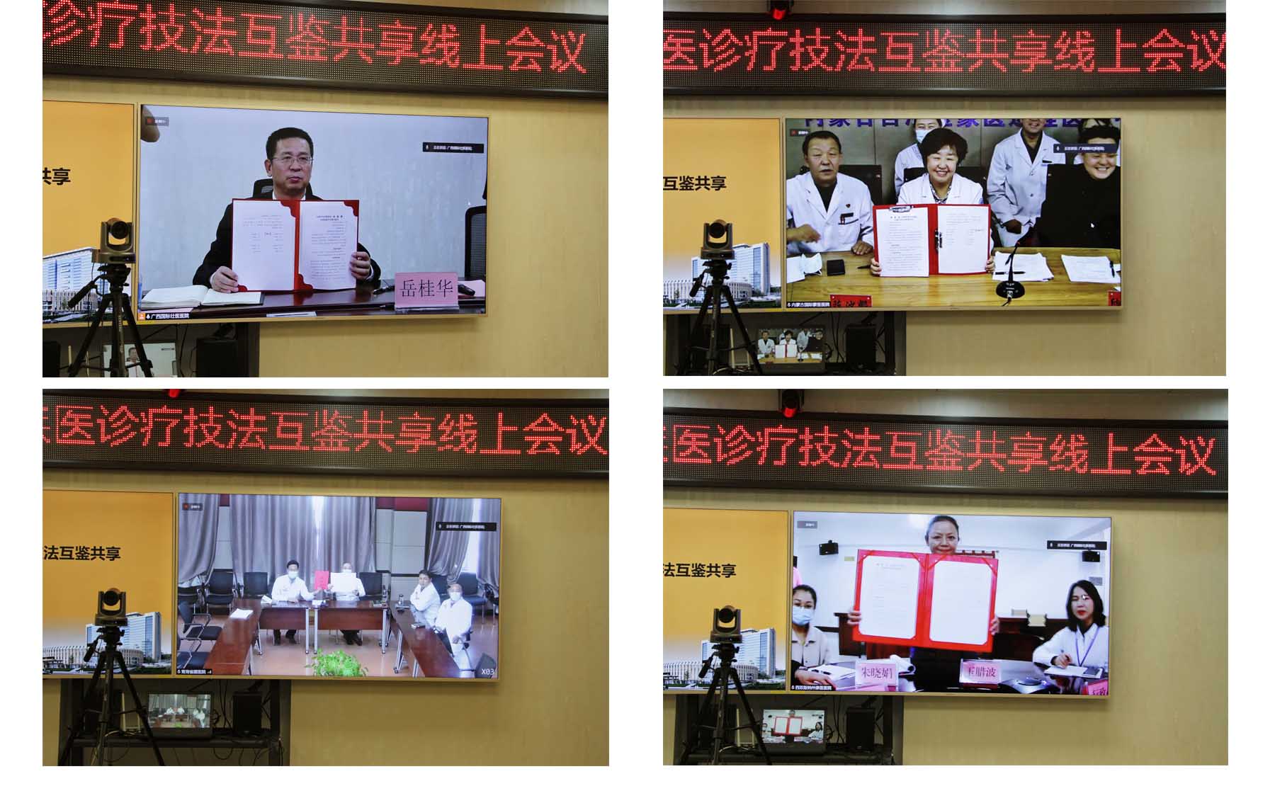 广西国际壮医医院院长岳桂华、内蒙古国际蒙医医院院长陈沙娜、青海省藏医院副院长万玛拉旦、西双版纳傣族自治州傣医医院副院长玉腊波分别介绍了各自医院情况,并线上签订了四方合作框架协议。根据合作协议,藏、蒙、傣、壮医将在民族医学特色诊疗技法、人才培养、学术交流、科研合作等方面,互鉴共享,共同发挥民族医药的优势,为建设健康中国贡献民族医药力量。