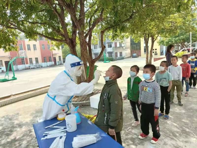 医院医疗队抵达防城港已为当天中午,主要负责防城港市光坡镇各乡村群众及当地企业、工厂人员的核酸检测工作,时间紧,任务重。核酸检测点彻夜灯火通明,医疗队队员们每天连续奋战12小时,12月25日,当地气温骤降,队员们虽身穿不透气的防护服,但还是感到阵阵寒意,这支几乎由巾帼女将组成的突击队,用最坚决的态度,拼出了瑞康人的速度和力度。村公所里、学校里、马路上甚至在田埂里,几乎都能看到我院医疗队队员的身影。 他们以高效的工作、专业的技术、丰富的经验、过硬的作风,让当地百姓竖起了拇指!