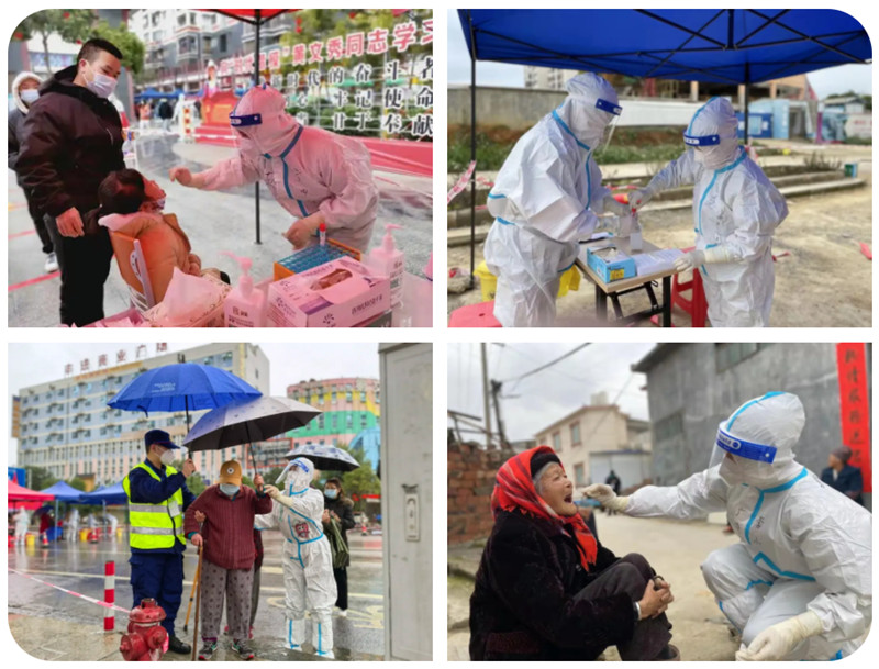 在百色,一声令下,队员们就迅速分组投入疫情防控工作,进小区,驻广场,走村屯,队员们不畏严寒,不惧风雨,不舍昼夜,翻山越岭,相继到各个社区、村落、驻点开展核酸采样工作,确保不落一户、不漏一人。一个个白色的身影犹如黑夜里的亮光,为百色人民送去温暖,点燃希望。