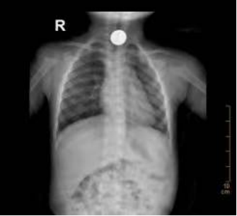 小宝食管上段存在一圆形大小约20X20mm金属异物