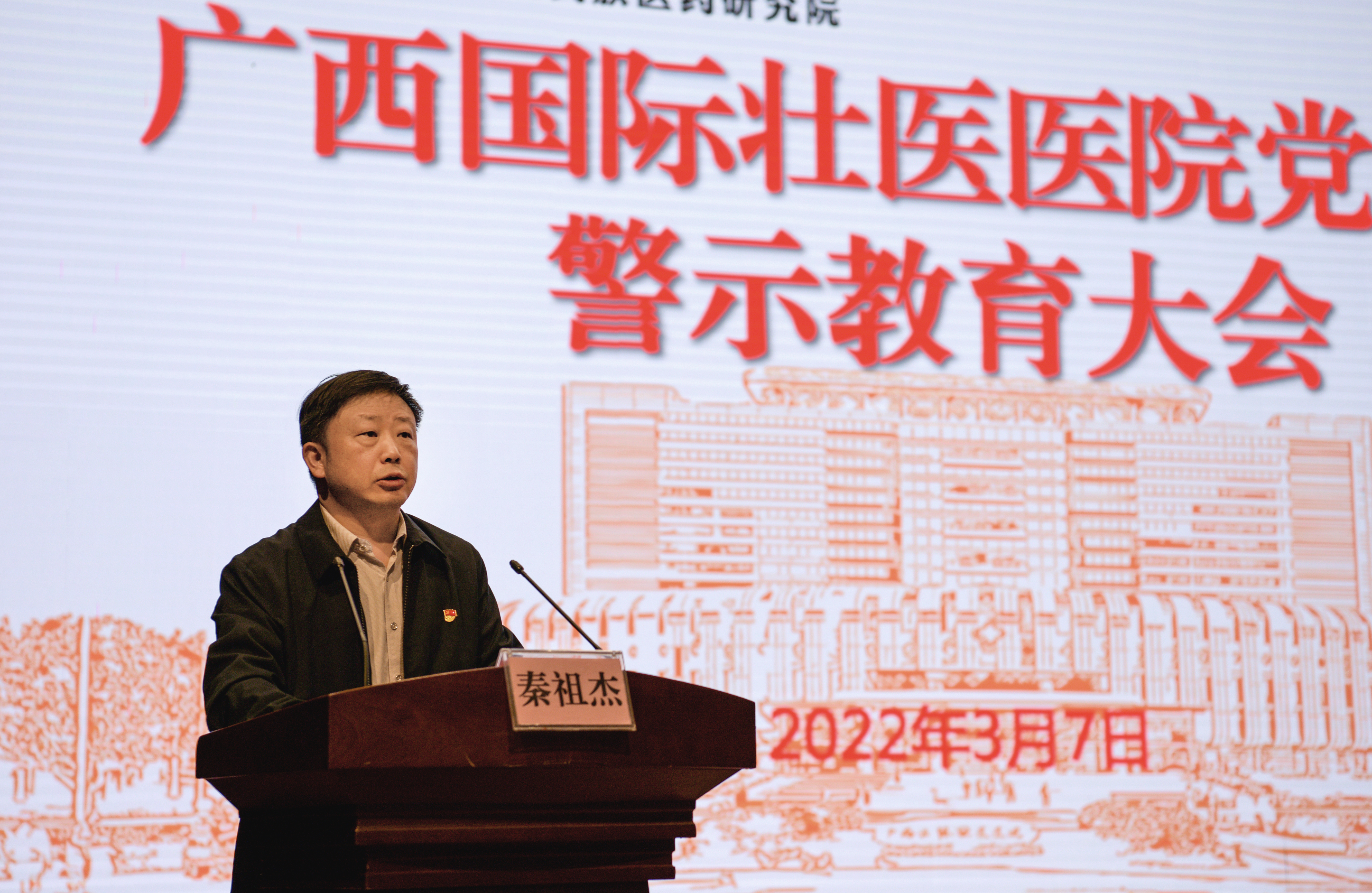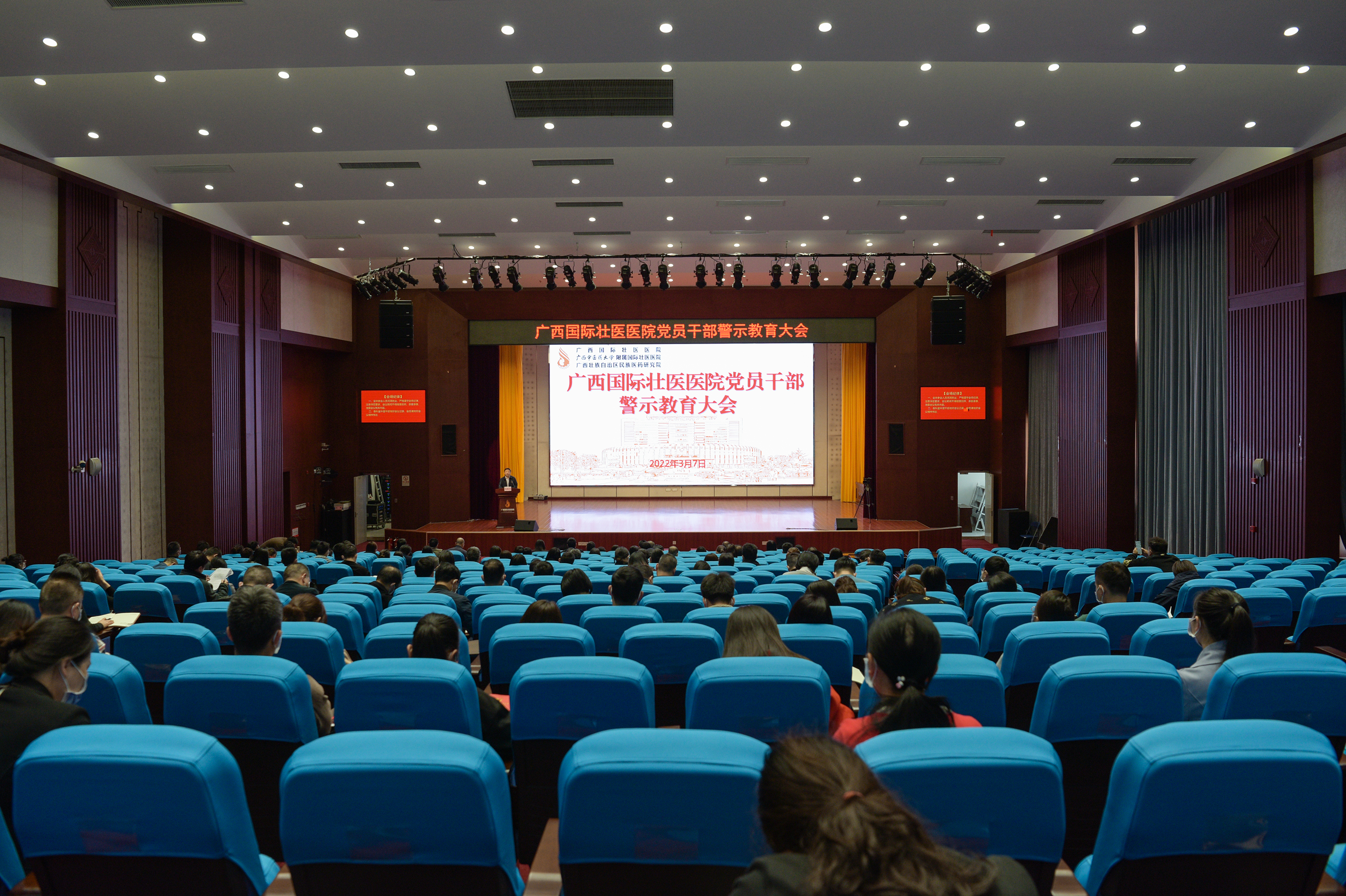 3月7日上午,广西国际壮医医院召开党员干部警示教育大会。医院领导、全体中层干部,各党总支书记、纪检委员,各党支部书记、纪检委员,重点部门和关键岗位全体人员参加。党委副书记吴光主持会议。