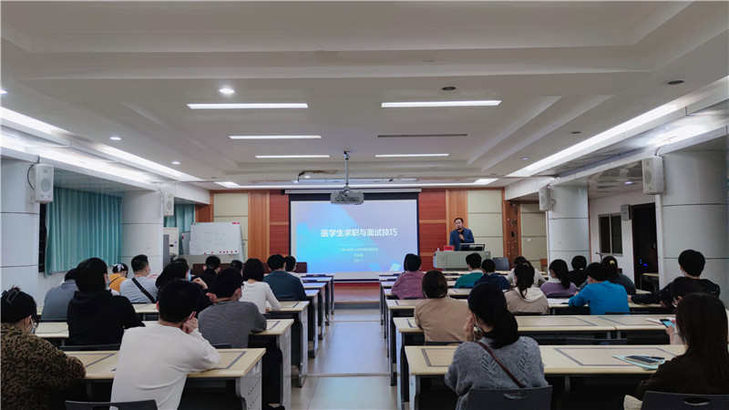 汪国翔向用人单位介绍了医院住培基地建设基本情况和2022届毕业(结业)学员总体情况。随后,北流市中医医院、丽珠医药集团股份有限公司两家用人单位负责人先后进行宣讲,并对单位基本情况、职业发展方向、薪资福利等学员关心的问题进行解答及沟通,现场气氛热烈。