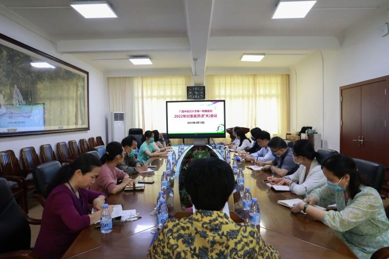 4月12日下午,一附院纪委在行政会议室召开2022年纪委委员扩大会,全体纪委委员、党总支纪检委员、专职纪检干部参加会议,会议由一附院纪委书记周广林主持。