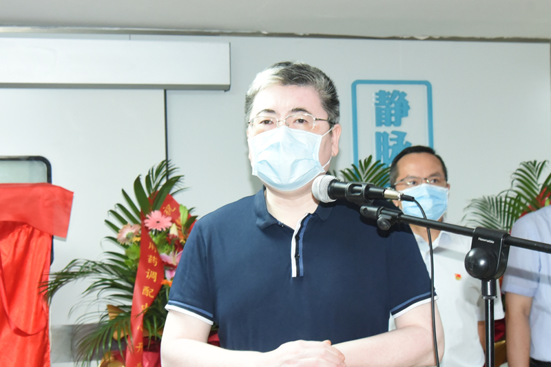 高宏君主持开业仪式,他希望药学部以更强的担当精神,更高的工作标准,更有力的工作措施,不断提高静脉用药集中调配的规范化水平,努力为临床提供合理、安全、有效的成品输液及更优质的药学服务,进一步提升医院医疗质量。