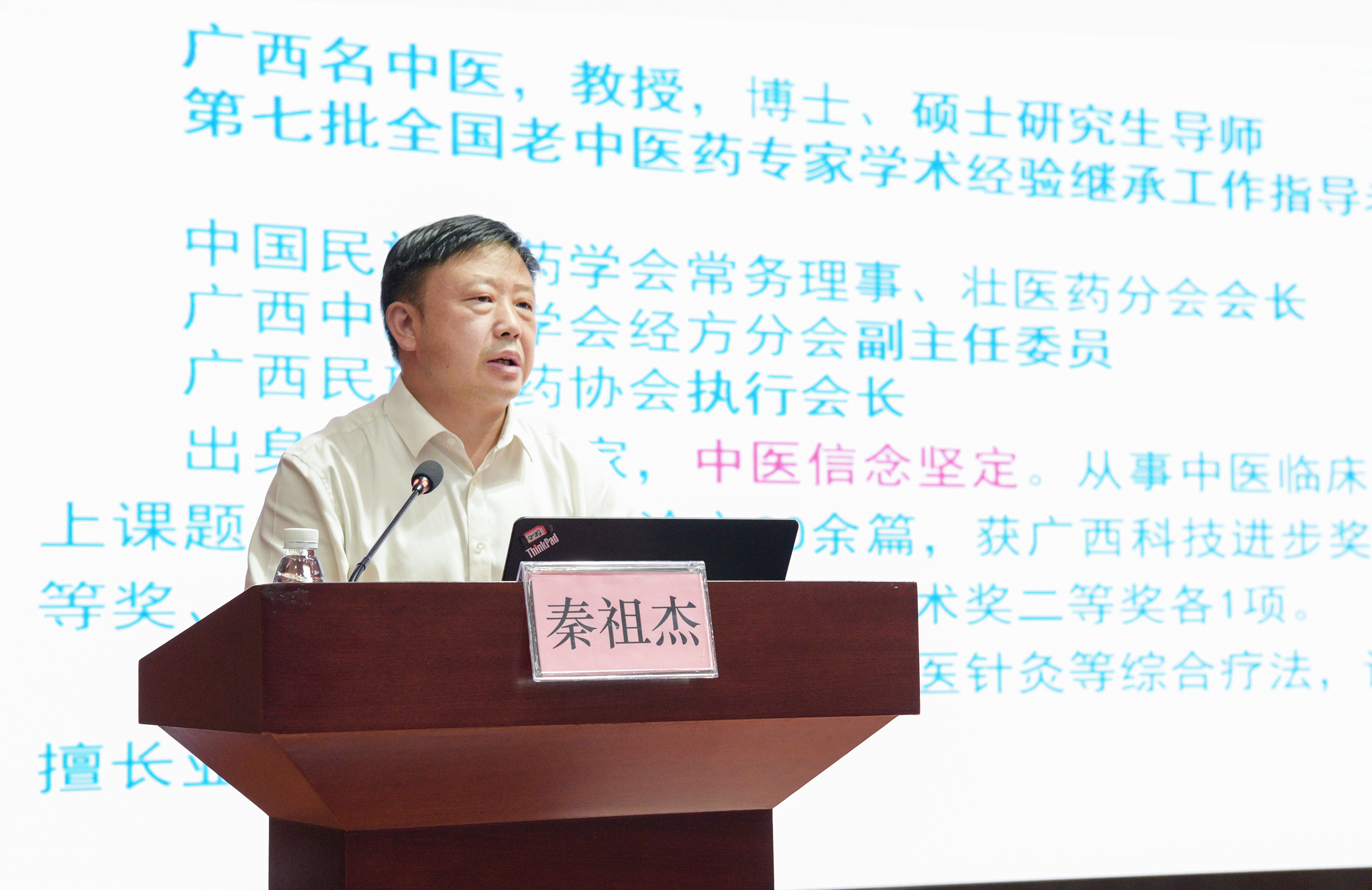 秦祖杰以《中医临床思维培养与实践应用》为题,以中医临床思维概述、中医临床思维培养、中医临床思维实践三个方面,结合自身临床案例分析、个人临证体会,阐述了中医临床思维培养的途径,强调了中医临床思维的重要性。他语重心长地嘱咐参会人员,学习并非一日之功,要培养中医临床思维,需要树立中医文化自信、坚定中医信念,努力学习、终身探索,多读经典、掌握中医传统文化,在实践中总结,在总结中进步。