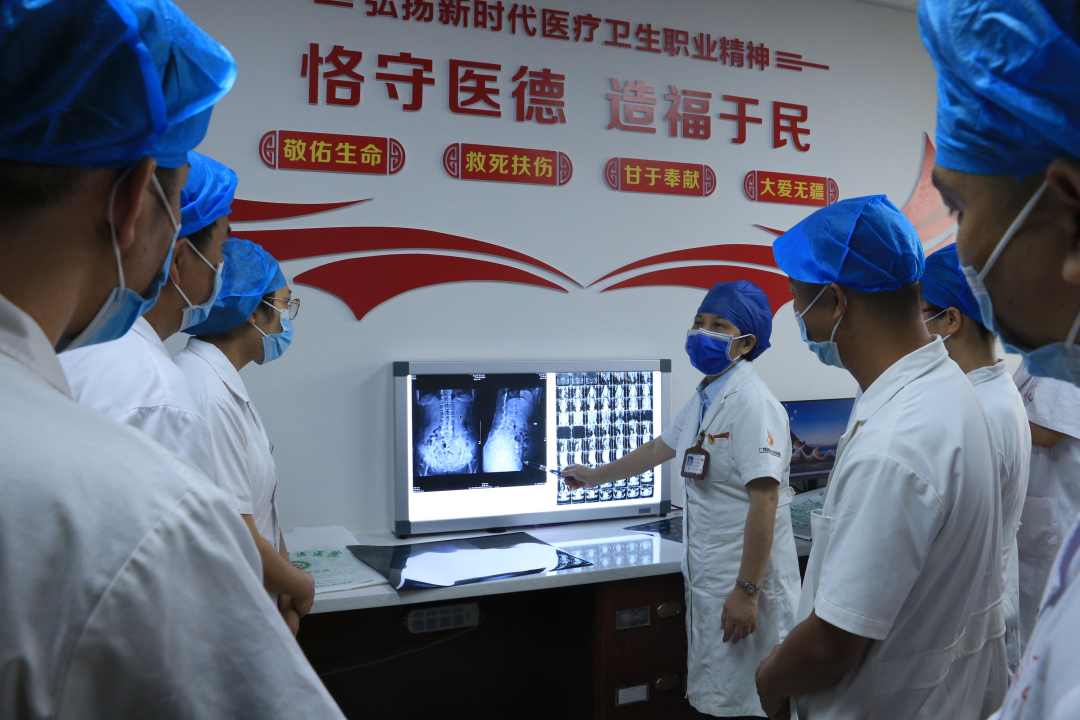 21日上午,专家团队一行到龙州县中医医院壮医康复科进行带教查房,专家们与龙州县中医医院壮医康复科医务人员就双侧股骨头坏死患者的临床症状、体征、体格检查、辅助检查报告,结合患者病史进行了深入交流和讨论,并现场制定了治疗方案。