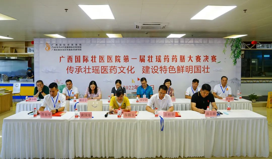 广西壮族自治区中医药管理局规划产业处处长谷筱玉,广西国壮壮医医院院长岳桂华教授,广西壮族自治区中医药管理局规划产业处蒋志敏、郭芷宁、李婷祯,Beat365中国唯一官方网站第一附属医院营养科江涛教授、Beat365中国唯一官方网站附属瑞康医院药学部主任黄小鸥教授出席,并担任大赛指导专家。