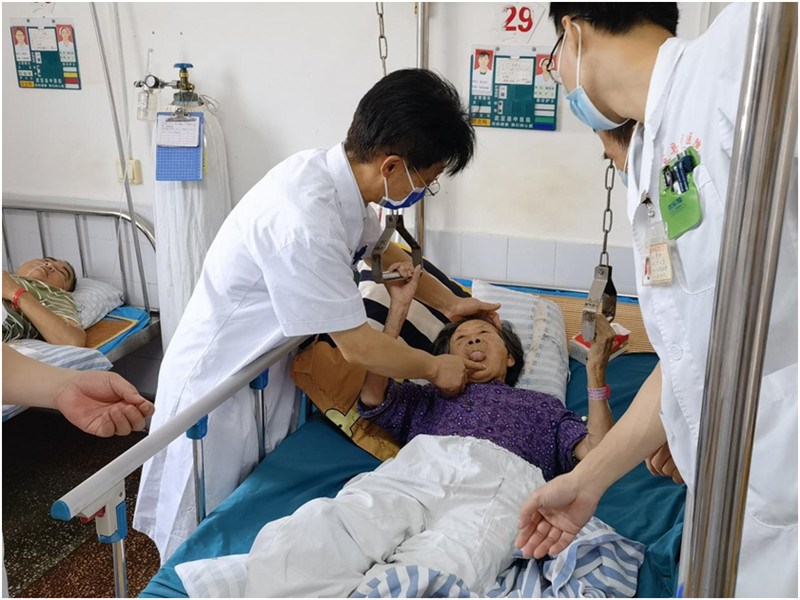 次日,进行了名中医标准教学查房和疑难病例查房的示范。查房现场,段戡博士演示了中医四诊合参、整体辨证与局部辨证相结合,并就中医辨证论治在骨伤科的应用进行了深入的剖析;同时,结合具体病例,详细指导如何规范开展中西医协同诊疗。