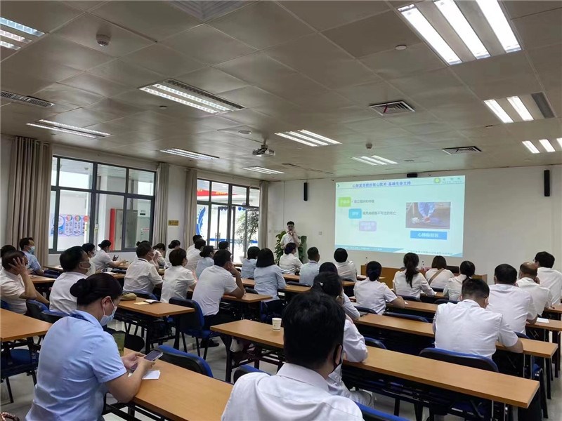 一附院受南宁轨道地产物业公司的邀请,于8月25日上午,由外联拓展部组织仙葫院区急诊科温可华与李荧妃护士,前往火车东站方向,对该公司全体的员工,开展海姆立克和心肺复苏技能的健康宣教。