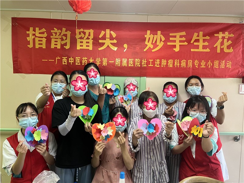 一附院团委、社工部开展“指韵留尖,妙手生花”社工进肿瘤科病房专业小组活动第二节“纸上添花”手工坊