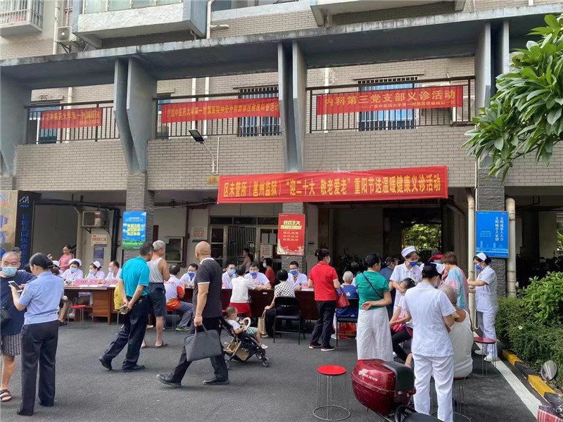 一附院受未管所(邕州监狱)的邀请,于9月27日上午,由外联拓展部组织东葛院区治未病中心、肝病一区、神经外科、脑病科、中医经典科与内分泌科、麻醉科的护理组人员,前往景晖花园小区,对该单位的职工与退休员工,开展以“重阳节关爱老年人健康”为主题的健康义诊活动。