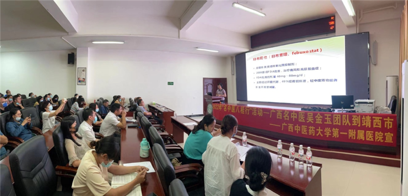 为深入推进"名中医八桂行"活动,传播名中医学术思想和技术专长,点对点提升基层中医药服务能力,切实满足人民群众对中医药服务的需求,9月29-30日,一附院广西名中医吴金玉团队一行人到靖西市中医医院开展2022年广西“名中医八桂行"活动,进行了学术讲座、教学查房、义诊等活动。