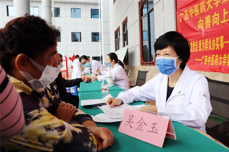 自开展广西“名中医八桂行”活动以来,吴金玉名中医学术团队积极响应党和国家号召,以实际行动践行“感党恩,跟党走,我为群众办实事”号召,带领团队积极搭建人才建设和学术传承的平台,提升中医特色、专科核心技术及全面诊疗服务能力,将高水平的学术思想、优质的中医药服务和先进的医疗技术送到基层,有效地传播了名中医专家的学术思想、技术专长,切实提高基层医务人员中医药服务能力和临床技术水平,进一步推动基层中医药事业的发展,为群众办实事,更好的让人民群众在家门口就能享受到优质高效的健康服务,让先进的医疗资源惠及八桂百姓。